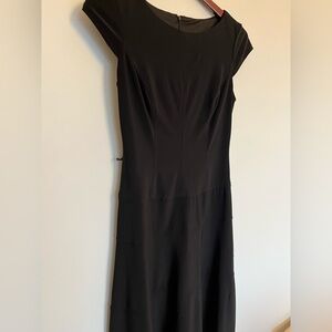 This black dress is perfect for any occasion. Its sleek design offers a timeless look that is both sophisticated and versatile. Ideal for evening events or formal, cocktails or holidays . Fabric is strechy, there is no belt eith the dress.