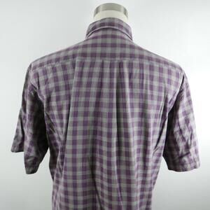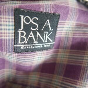 Jos A Bank Mens Cotton Button Down Purple Plaid Shirt Large Short Sleeve