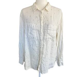 Boden 100% Linen Button Up top women's White 8 Coastal Beach Vacation Career