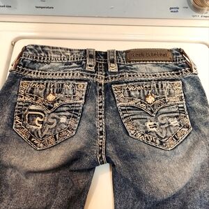 Chic bikini set with flounce ruffle top. Vibrant floral pattern. High-waisted bottoms for a flattering fit. Pre-owned, excellent condition.