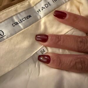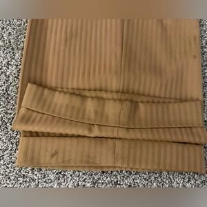 Elevate your style with this sophisticated tan double-breasted suit. Made in Italy. Perfect for formal occasions, this suit offers a classic fit and timeless appeal. Ideal for the modern gentleman. Used. Marks, stains, holes (see photos). Suit jacket: armpit-armpit 22in. Shoulder-hem 33.5in armpit-bottom sleeve 17.5in. Pants: labeled 54. Inner thigh 30in. Outer thigh 41.5in.