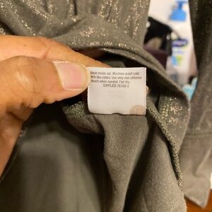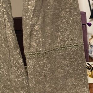 Shimmering metallic olive green blouse. Long sleeves. Perfect for layering.