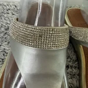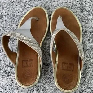 Fit Flops Beaded Slip On Flip Flops Silver Gold Women's Size 8 (EU 39, UK 6)