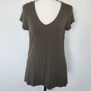 Rachel Zoe Linen Jersey Floral Print Short Sleeve Tunic Top Shirt Button Up Back