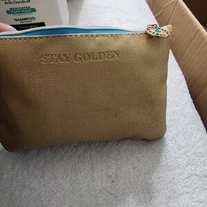 ipsy Gold Cosmetic Bag with Blue Lining