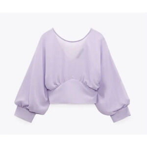 Zara Women's Chiffon Cropped Fitted Waist Top Purple Size S