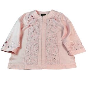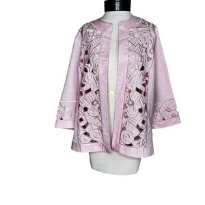 Bob Mackie Wearable Art Pink Laser Cut Out Detail Open Front Blazer size Large