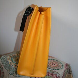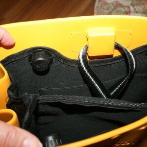 The O Bag is made from elastomeric foam, which comes in 20 different colors. This material is known for its lightweight and customizable features, allowing users to mix and match handles and interior components to create a unique accessory.