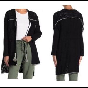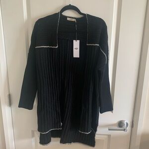NWT UGG Riley Long Tassel Pom Pom Pull Knit Sweater Cardigan Poncho Black Women’s size XS/S Size: XS/S Color: Black with gray trim Style: 1095907 Oversized, open front, collarless, long sleeve, front patch pockets, side slots, Pom Pom tassels 30% cotton, 30% nylon , 25% wool, 12% viscose , 3% cashmere