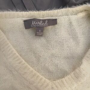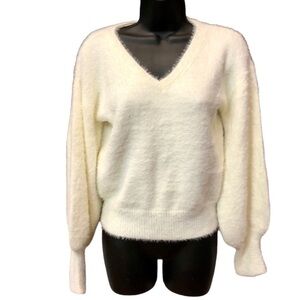 Marled Reunited Clothing Sz S Ivory Fuzzy V Neck Balloon Sleeve Sweater