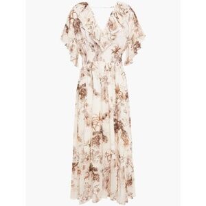 NWT | Sandro Natural Marro Ruffled Printed Gauze Midi | Sz 6 or 38