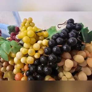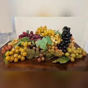 Vibrant artificial grape cluster with a variety of colors. Perfect for home decor or display. About 2 gallon bags full. Some fading on 2 sets, as depicted, but in otherwise great condition!