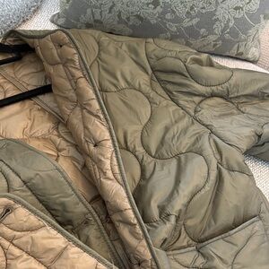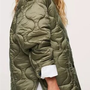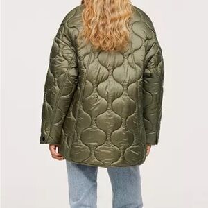 Mango olive quilted jacket with button closure. Perfect for layering! Great condition, size M, meant to fit oversized