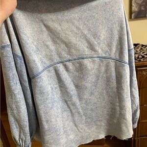 Stylish light blue denim pullover with quarter zip design. Adorable and comfy for casual wear. Brand and size tags are missing but this is from Urban Outfitters and my best guess is that it fits like and oversized small or a medium
