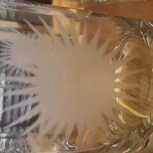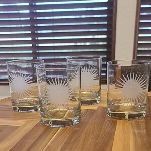 Nieman Marcus Set of four glass tumblers with etched sunburst design. Perfect for any occasion.