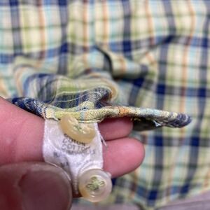 Spare buttons attached at hem for convenience