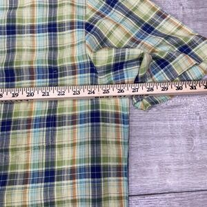 Zanella Shirt Mens 2XL Green Blue Plaid Short Sleeve Button Up Made in Italy