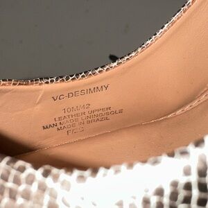 The Vince Camuto VC-Desimmy Pump in Metallic Gold is a sophisticated and versatile addition to any wardrobe. Crafted with a luxurious leather upper featuring a metallic snake print, this pump offers both style and comfort.