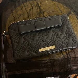 Juicy Couture Black Embossed Wristlet/Clutch with Heart Charm