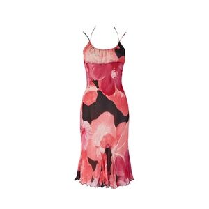 Blumarine S/S 2002 Pink & Black Hibiscus Floral Silk Dress