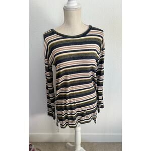 This lightweight semi-sheer top is perfect for layering and having a feminine look. It comes in Ivory. This top is a pullover style top that has a faux wrap top or ballet top look. It has ribbed cuffs. This is a great basic or minimalist piece and can be transitioned in the seasons. New with tags.