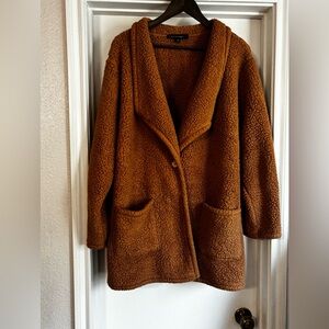 Cozy and chic faux fur coat. Soft texture and warm feel. Ideal for layering. 25” pit to pit