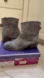 Stylish gray ankle boots. Features buckle accents. Perfect for casual wear. New in box, never worn. Excellent condition, no flaws