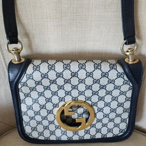 Gucci Vintage 1970s Blue Monogram Blondie Shoulder Bag