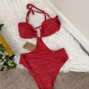 π Berlook Cutout One-Piece Swimsuit | Size S | Textured Coral Glow