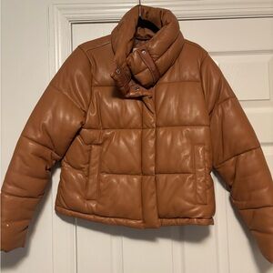 Abercrombie & Fitch Vegan Leather Puffer Coat Brown Size Large