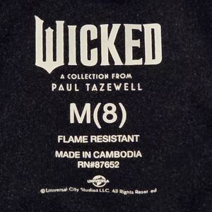 Cozy, fan-favorite sleep dress inspired by Elphaba from Wicked. Black with green accents, soft and comfy for lounging or bedtime. Size M/8. Gently used and in great condition with no flaws noted. Perfect for any Wicked fan or comfy-wear lover.