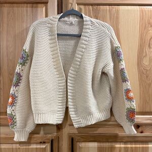 Dreamers by Debut Cream Knit Patchwork Floral Sleeve Cottagecore Open Cardigan