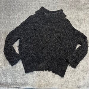 We The Free Blue White Striped Distressed Knit Open Shoulder Pullover Top M
