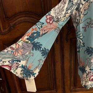 Hale Bob Blue and Pink Floral Beaded Silk Blouse, NWT, XL