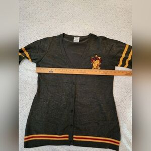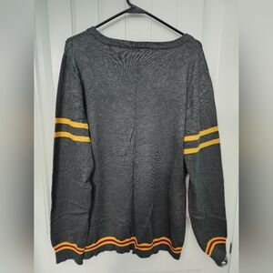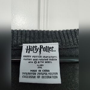 Cozy gray knit sweater. Features Harry Potter branding. Soft and comfortable.
