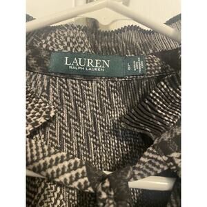 Lauren Ralph Lauren Top Sz L Pleated Georgette Swing Tunic Blouse Black Argyle