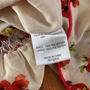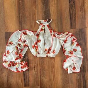 Size XS. Open shoulders, long sleeves. Floral pattern. Smocked hem, front and back key hole details.