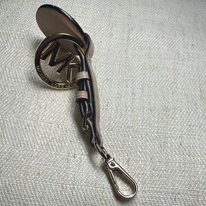 Replacement keychain with gold MK logo. Beige leather strap adds sophistication. As is. Please see photos for more details. Thank you.