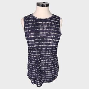 Athleta Small Gray Black Stripe Tie Dye Sleeveless Top Modal Polyester