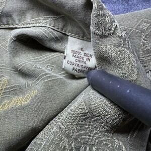 Tommy Bahama Shirt Mens L Silk Button Up Green Floral Camp Hawaiian Loop Collar. Same/next business day shipping.