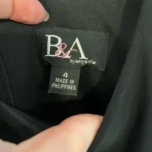 Black:hot pink formal dress by Betsy & Adam. Ideal for elegant events. NOTE: some pulling on the skirt but mostly unnoticeable due to the fullness of the skirt and how it hangs. Zip back closure. Priced to sell!