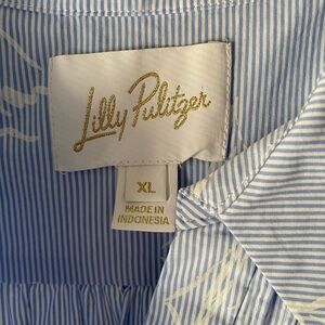 Summery blue white Lily Pulitzer dress with pockets! Beautiful details never worn! EUC