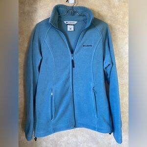 Vibrant blouse with a mix of blue, green, and orange. Features a unique pleated design, a fun top to add a bit of color! In good used condition with no apparent holes or stains.