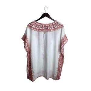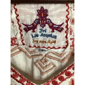 JW Los Angeles Joy Hope Flight Embroidered Kaftan Tunic Top White Red Size S