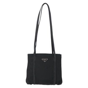 PRADA Shoulder Bag Nylon Leather Black Silver Auth