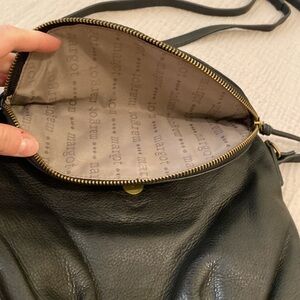 Sleek and stylish black leather crossbody bag perfect for any occasion. Features a convenient zip closure and adjustable strap for comfort.