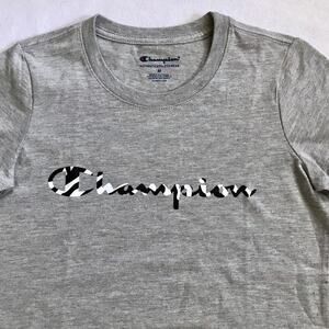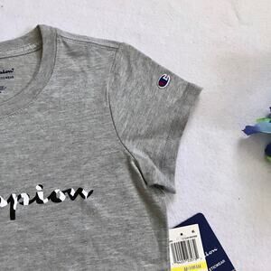 *Champion - nwt, marled heather gray, short sleeves, graphic logo front, patch logo left sleeve
