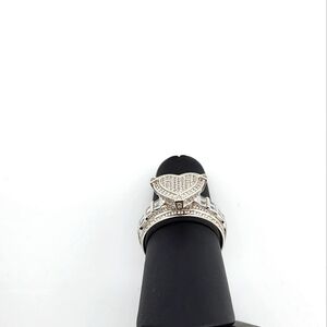 Elegant silver ring with a heart design. Adorned with sparkling cubic zirconia crystals. Perfect for special occasions.
