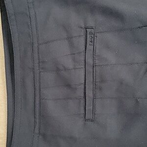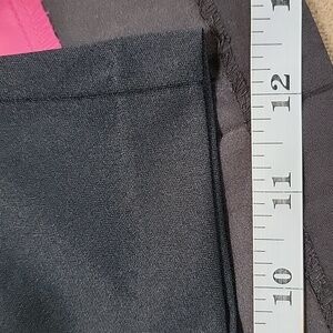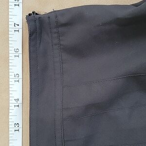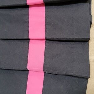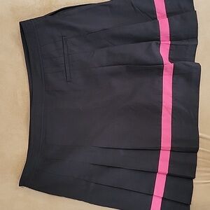 Izod XFG Cool FX golf / tennis pleated skort. 100% black polyester with pink stripe. side zip and hook closure. 2 pockets; right side seam, back welt (sewn shut). For skirt, waist measures flat 17.5"with 18" outer length. For shorts, 9.5" rise. 4" inseam. 12.5" leg opening at hem. Size 12 EUC