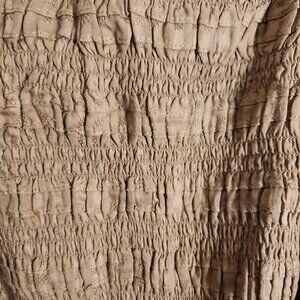 American Eagle NWOT Ruched Brown Cotton Peasant Balloon Sleeve Cropped Top Size XL. Pit to pit 20"(unstretched), shoulder to hem 22", On Our Off Shoulder, Hippie, Neutral Light Brown, Balloon Sleeves, Flattering Square Neck.
